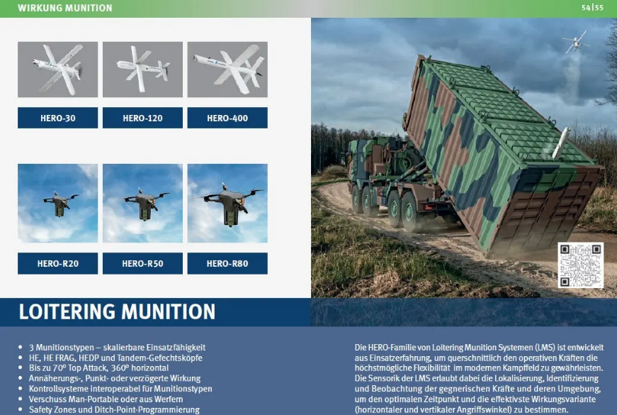 Η Rheinmetall έχει λανσάρει μια ιδέα για ένα σύστημα εμπορευματοκιβωτίων που εκτοξεύουν πυρομαχικά της “οικογένειας” Hero – γνωστά και ως drone καμικάζι – από την ισραηλινή εταιρεία UVision. Το τροποποιημένο εμπορευματοκιβώτιο με 126 κυψέλες εκτόξευσης ανοίγει μια σειρά από επιχειρησιακές δυνατότητες σε ξηρά και θάλασσα. Οι λεπτομέρειες του συστήματος περιλαμβάνονται σε φυλλάδιο της Rheinmetall.