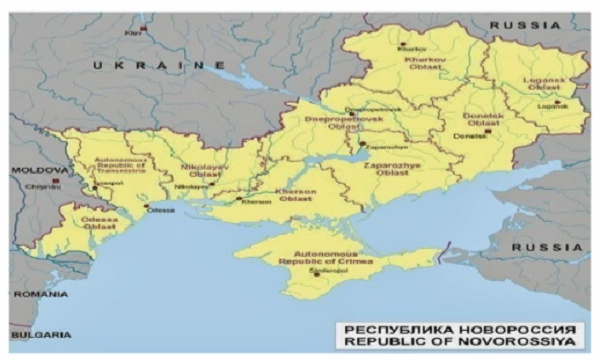 Ήδη κυκλοφορούν χάρτες με διάφορες εκτιμήσεις ή και προφητείες, που φθάνουν στο σημείο η Ρωσία να παίρνει όλη την ανατολική Ουκρανία, συμπεριλαμβανομένου του Χαρκόβου, όπως επίσης και την παραλιακή ζώνη από το Μικολάεβ και την Οδησσό μέχρι την Υπερδνειστερία, μετατρέποντας την απομένουσα Ουκρανία περίκλειστο κράτος. Και όπως δήλωσε ο πρόεδρος Πούτιν, η Οδησσός είναι ρωσική. Είναι η περιοχή που οι Ρώσσοι ονομάζουν NOVOROSSIYA (Νέα Ρωσία), που δημιουργήθηκε επί Μεγάλης Αικατερίνης.