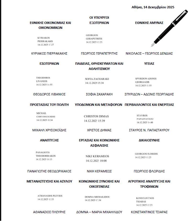 Είχε προηγηθεί, το πρωί της Κυριακής, η διακίνηση μέσω του Αθηναϊκού και Μακεδονικού Πρακτορείου Ειδήσεων (ΑΠΕ-ΜΠΕ), δημοσιεύματος για τα μισθολογικά οφέλη. Το σχέδιο νόμου υπογράφεται ψηφιακά από 18 υπουργούς και δύο αναπληρωτές υπουργούς της κυβέρνησης. Όμως, από το έγγραφο που δόθηκε στη δημοσιότητα, λείπει η ψηφιακή υπογραφή του αρμόδιου υπουργού Εθνικής Άμυνας Νίκου Δένδια, λογικά λόγω της απουσίας του στα Ηνωμένα Αραβικά Εμιράτα (ΗΑΕ).