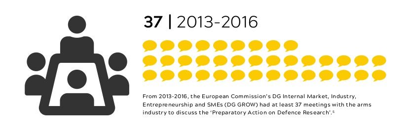 Στο διάστημα από το 2013 μέχρι το 2016 έγιναν τουλάχιστον 37 συναντήσεις μεταξύ εκπροσώπων της βιομηχανίας όπλων και διευθύνσεων της Ευρωπαϊκής Επιτροπής.