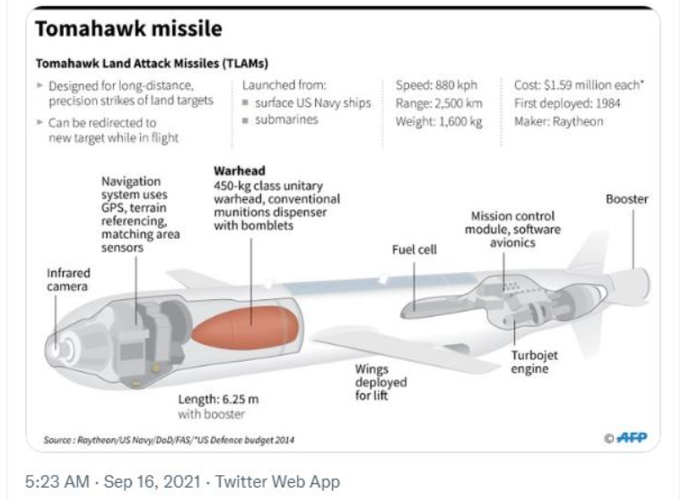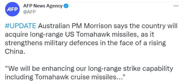 Και επειδή οι αναλύσεις σχετικά με το ζήτημα της νέας συμμαχίας στη λεκάνη του νότιου Ειρηνικού περισσεύουν, θα την δούμε και από άλλη μία οπτική… Πέραν όλων των άλλων, μέσω του αμερικανικού ιστοχώρου The WarZone, έγινε γνωστό ότι στο πλαίσιο της νέας συμμαχίας η Αυστραλία έχει συμφωνηθεί να προμηθευτεί και μία σειρά όπλων μακρού πλήγματος, υψηλής ακρίβειας που αναβαθμίζουν κατακόρυφα τις επιχειρησιακές δυνατότητες των ενόπλων της δυνάμεων συνολικά.