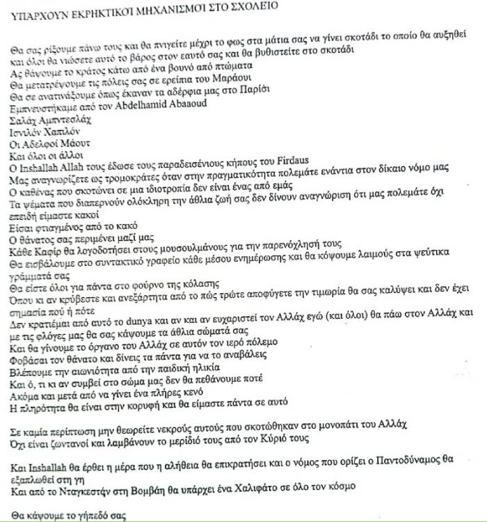 Το απειλητικό μήνυμα που έφτασε μέσω ηλεκτρονικού ταχυδρομείου σε 35 σχολεία της Αττικής, σήμερα το πρωί δεν θα πρέπει να αντιμετωπιστεί με ελαφρότητα από τις αρχές, καθώς επίσης και από την ελληνική κοινωνία. Παρά τον ερασιτεχνισμό που φαίνεται, καθώς το DP εξασφάλισε τα σχετικά ντοκουμέντα, η απειλή ότι έχουν τοποθετηθεί εκρηκτικοί μηχανισμοί εντός σχολικών εγκαταστάσεων, δεν θα πρέπει να αντιμετωπιστεί επιπόλαια, αλλά με ιδιαίτερο σκεπτικισμό από τις αρχές…