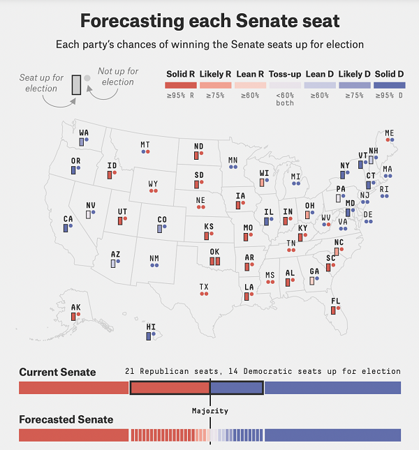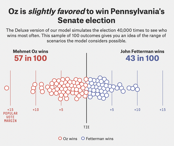 Επομένως, από όλες τις έδρες της Γερουσίας που αυτήν τη στιγμή αποτελούν εκλογικό ντέρμπι, είναι εκείνη της Πενσιλβάνια. Αυτή είναι που σύμφωνα με το έγκυρο FiveThirtyEight, συγκεντρώνει τις συγκριτικά περισσότερες πιθανότητες να αποτελέσει την καθοριστική έδρα που θα δώσει ή όχι στο Ρεπουμπλικανικό Κόμμα την πλειοψηφία.