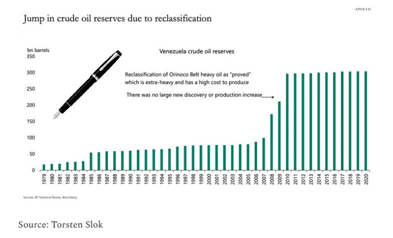 Επίσης σύμφωνα με προσεκτικούς αναλυτές η αύξηση των αποθεμάτων πετρελαίου το 2010 από 100 δισ. σε 300 δισ. βαρέλια, επί εποχής Τσάβες, δεν αντιπροσωπεύει κατά κανόνα νέες ανακαλύψεις ανεκμετάλλευτων πηγών. Προκύπτει από πολιτική απόφαση της κυβέρνησης Τσάβες να αναβαθμίσει τα κοιτάσματα του heavy πετρελαίου που βρίσκονται στη ζώνη του ποταμού Ορινόκο σε υπαρκτά και διαχειρίσιμα, δηλαδή που μπορεί να ανακτηθούν με εύλογη βεβαιότητα υπό τις υπάρχουσες οικονομικές και λειτουργικές συνθήκες. Όμως τα συγκεκριμένα κοιτάσματα, αποτελούνται από extra heavy πετρέλαιο, το οποίο έχει χαμηλή εξόρυξη και υψηλό κόστος παραγωγής. Επιπλέον, απαιτούνται πολύ μεγάλες επενδύσεις.
