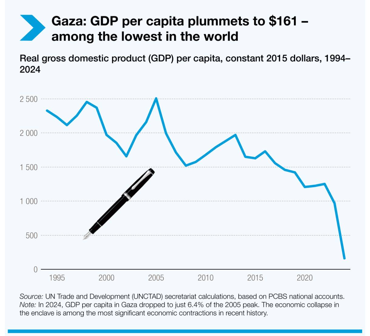 Η έκθεση “Εξελίξεις στην οικονομία των Κατεχόμενων Παλαιστινιακών Εδαφών” της Διάσκεψης των Ηνωμένων Εθνών για το Εμπόριο και την Ανάπτυξη (UNCTAD) δημοσιεύτηκε, προ ημερών, και τα στοιχεία που αναφέρονται είναι συγκλονιστικά. Συγκεκριμένα, όπως σημειώνεται, στα Κατεχόμενα Παλαιστινιακά Εδάφη, στη Γάζα: