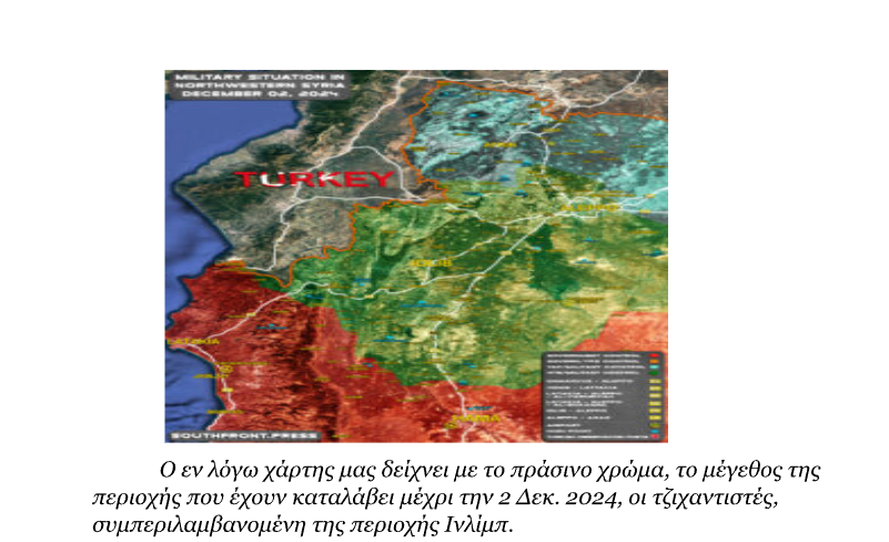 Και για να μην ξεχνιόμαστε, δεν βλέπουμε κάποια καταδίκη της “πολιτισμένης δημοκρατικής” Δύσης σε αυτή την εισβολή της Τουρκίας δια αντιπροσώπων, ούτε καν η Ελλάδα να μιλήσει, όπως έχει ηθικό και εθνικό δικαίωμα, για τους εκατοντάδες χιλιάδες Ρουμ (Ρωμιοί , Έλληνες της Συρίας) χριστιανούς ορθοδόξους της Συρίας, που εξοντώνονται στην περιοχή των επιχειρήσεων των “φίλων” μας Τούρκων, παρά μόνο για την Ουκρανία. Όπως αναφέρεται σε ανάλυση του BBC, τα γεγονότα στη Συρία τις τελευταίες ημέρες είναι μια ακόμη απόδειξη ότι ο πόλεμος που κυριαρχεί στη Μέση Ανατολή κλιμακώνεται και δεν υποχωρεί.