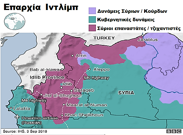 Το τελευταίο επεισόδιο στη μεγάλη ανθρωποσφαγή της Συρίας θα γίνει στην επαρχία της Ιντλίμπ. Εκεί στρέφονται τα βλέμματα του κόσμου για αυτά που πρόκειται να συμβούν. Η επαρχία της Ιντλίμπ στην Συρία, είναι το τελευταίο μέρος της Συρίας που ελέγχεται ακόμη από τα ηττημένα στην υπόλοιπη Συρία και Ιράκ απομεινάρια των ακραίων ισλαμιστικών οργανώσεων, των αμετανόητων ακόμη φανατικών ισλαμιστών.