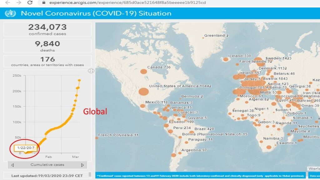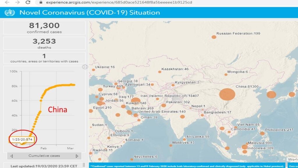 Όπως προαναφέρθηκε, οι Κινέζοι γνώριζαν τους κινδύνους εξάπλωσης του κορονοϊού από τις 17 Νοεμβρίου 2019. Κι όμως, ακόμη και σήμερα η παγκόσμια κοινότητα δεν το λαμβάνει υπόψιν της αυτό. Παραδείγματος χάρη, η επίσημη καταγραφή των κρουσμάτων από τον Παγκόσμιο Οργανισμό Υγείας του ΟΗΕ δεν ξεκινά στις 17 Νοεμβρίου του 2019, αλλά μετά από τα μέσα Ιανουαρίου (22-23 Ιανουαρίου 2020, Εικόνες 2 και 3). Δηλαδή, ξεκινά με καθυστέρηση 2 μηνών από την πραγματική έναρξη της πανδημίας.