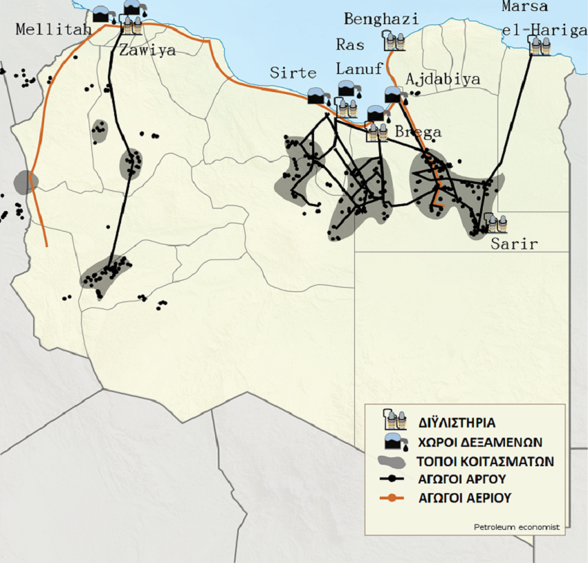 Σύμφωνα με τον Εθνικό Οργανισμό Πετρελαίου της Λιβύης (National Oil Company-NOC), που ελέγχει το 70% της παραγωγής, από τα 1,3 εκατομμύρια βαρέλια ανά ημέρα, η παραγωγή πλέον φθίνει μετά τα μέσα Ιανουαρίου στα 500.000, στις αρχές Φεβρουαρίου στα 262.000, με άμεση προοπτική να συρρικνωθεί καταθλιπτικά στα 72.000.