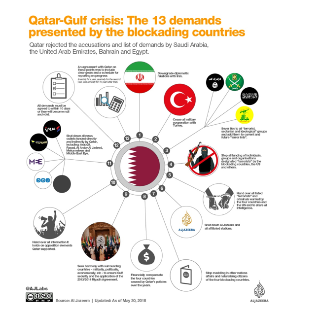 Ασφαλώς δεν πρέπει να λησμονείται η μεγάλη κόντρα που υπάρχει μεταξύ του άξονα Σαουδικής Αραβίας-Εμιράτων με το Κατάρ, καθώς το δεύτερο για μία σειρά από λόγους στρέφεται εναντίον της κυριαρχίας των άλλων δύο. Αυτό το κάνει κυρίως μέσα από την υποστήριξη που προσφέρει στην Μουσουλμανική Αδελφότητα, αλλά και με τις ειδικές σχέσεις που έχει αναπτύξει με την Τουρκία.
