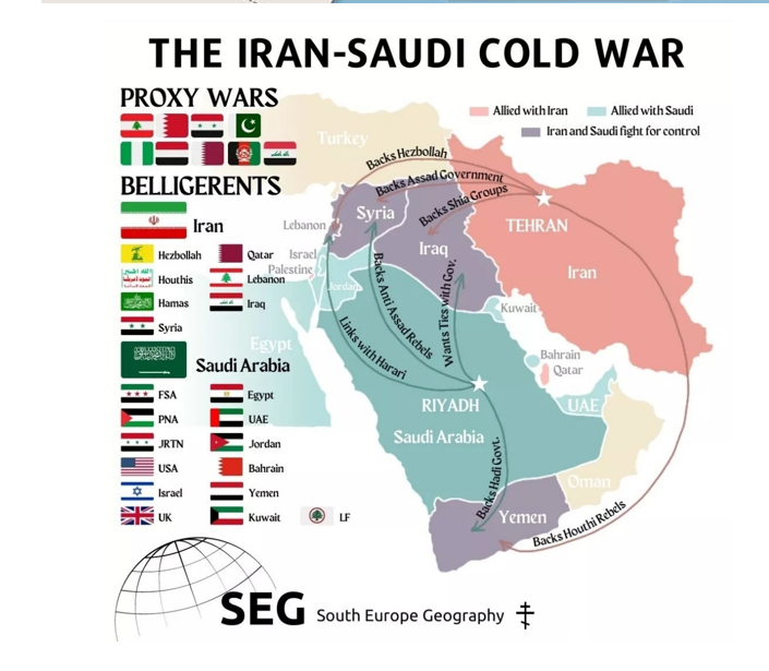 Επομένως παρατηρείται μία αναδιάταξη των δυνάμεων του μεσανατολικού συμπλόκου, με τους Άραβες να συγκεντρώνουν κυρίως οικονομική δύναμη και τους Ιρανούς να κινούνται στο πεδίο της πολιτισμικής ενσωμάτωσης και πολιτικής καθοδήγησης των σιιτικών πληθυσμών που διάκεινται φιλικά προς αυτούς. Για ακόμα μία φορά η μεγάλη εικόνα αποκαλύπτει την διαχρονική πάλη σουνιτών και σιιτών, η οποία αναδεικνύεται και πάλι σε μοχλό εξελίξεων.