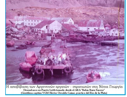 Πράγματι, η αρχική αντίδραση των Βρετανών δεν ήταν δυναμική, αφού έστειλαν ένα ερευνητικό παγοθραυστικό και ένα περιπολικό σκάφος (HMS Endurance) να πάει εκεί. Όταν το πλοίο έφτασε, στις 25 Μαρτίου, συνάντησε το βοηθητικό πλοίο Bahía Paraíso, που λίγο πριν είχε αποβιβάσει τους 40 εργάτες (με τους πεζοναύτες). Αποβίβασε λοιπόν ένα βρετανικό άγημα για την αποκατάσταση της τάξης και μετά επέστρεψε στα νησιά Φώκλαντς.
