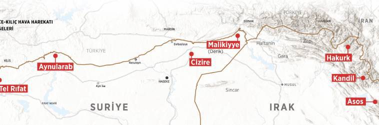 Επρόκειτο, όπως αναφέρουν σήμερα και τα τουρκικά μέσα, για μία αεροπορική επιχείρηση ευρείας κλίμακας, ενώ η εφημερίδα Yeni Safak στο πρωτοσέλιδό της γράφει ότι ήταν η πρώτη φάση της τουρκικής στρατιωτικής επιχείρησης και θα ακολουθήσει χερσαία εισβολή. Στις αεροπορικές επιδρομές χρησιμοποιήθηκε και το νέο επιθετικό UAV Akıncı. Οι περιοχές που βρέθηκαν στο στόχαστρο της επιχείρησης που ονομάστηκε ‘’γαμψό σπαθί’’, είναι Qandil, Asos, Hakurk στο βόρειο Ιράκ και οι περιοχές Aynularab, Tel Rifaat, Jizire και Derik στη βόρεια Συρία. Μεταξύ των στόχων για πρώτη φορά ήταν το Aynularab που βρίσκεται στη δυτική Συρία. Η περιοχή αυτή βρίσκεται πέραν της ακτίνας των 30 χιλιομέτρων, στην οποία η Άγκυρα, είχε προαναγγείλει ότι σχεδιάζει να επιβάλει μία ζώνη ασφαλείας (buffer zone).
