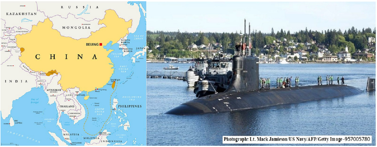 Η ύπαρξη του υποβρυχίου στη περιοχή δικαιολογείται λόγω της αυξανόμενης έντασης στον Ασιατικό Ειρηνικό. Η περιοχή αυτή είναι μια από τις πιο αμφισβητούμενες περιοχές στον κόσμο, αφού η Κίνα διεκδικεί το μεγαλύτερο μέρος της Θάλασσας της Νότιας Κίνας, κάτι που αμφισβητούν οι ΗΠΑ, οι Φιλιππίνες, το Μπρουνέι, η Μαλαισία, η Ταϊβάν και το Βιετνάμ. Τον τελευταίο καιρό η Κίνα, ίσως και λόγω της ιστορικής συμφωνίας AUKUS, έστειλε μεγάλο αριθμό πολεμικών αεροσκαφών στη ζώνη αεράμυνας της Ταϊβάν, με αποτέλεσμα ο Αμερικανός σύμβουλος Εθνικής Ασφάλειας να δηλώσει ότι «ανησυχεί βαθιά».