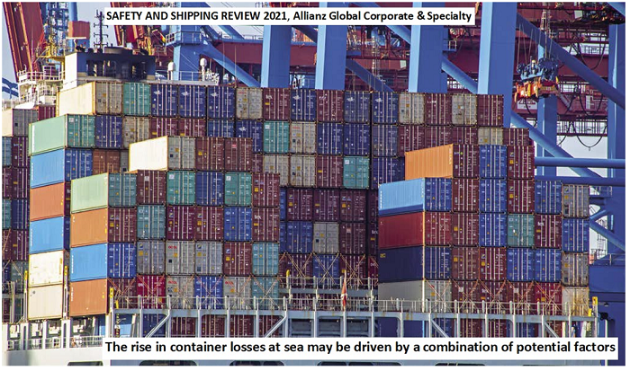 Στην πραγματικότητα, όμως, ο αριθμός αυτός είναι μεγαλύτερος, αφού η έκθεση γράφτηκε πριν την κατάρρευση των στοιβαγμένων κοντέινερς του “One Apus” τον Νοέμβριο του 2020 στον Ειρηνικό λόγω κακών καιρικών συνθηκών, όταν έπεσαν στη θάλασσα πάνω από 1.800 κοντέινερς. Σε όλα τα ατυχήματα κοινός παράγων ήταν οι κακές καιρικές συνθήκες (κυματισμός), σε συνδυασμό με τον τρόπο τοποθέτησης και στερέωσης.