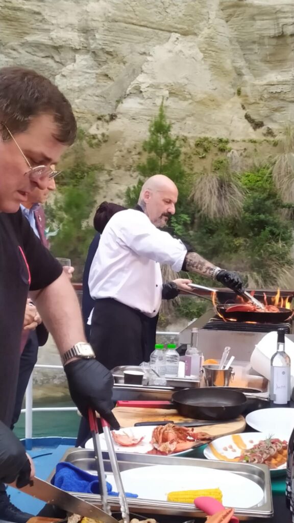 Η εκκίνηση των εκδηλώσεων με την παραλαβή του βραβείου συνδυάστηκε με τον μοναδικό διάπλου του Ισθμού της Κορίνθου και τις εν πλω γαστρονομικές προτάσεις δύο σεφ, που αυτοσχεδίαζαν με αστακούς του Κορινθιακού κόλπου, ντόπιο αγριογούρουνο, με εκλεκτό ψαρονέφρι, με τοπικά κρασιά και τσιπούρα που προσφέρθηκαν στους καλεσμένους βιώνοντας ένα μίνι ταξίδι στον κόσμο των απολαύσεων και της διασκέδασης όπως με πρωτοτυπία και αυθορμητισμό είχε στηθεί στα δύο επίπεδα του καραβιού.