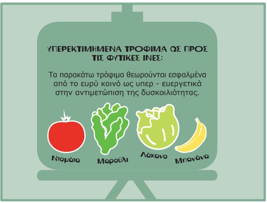 Για να αντιμετωπίσετε τη δυσκοιλιότητα, πρέπει να αυξήσετε την κατανάλωση των διαιτητικών (ή φυτικών) ινών. Ένας ενήλικας πρέπει να προσλαμβάνει ημερησίως 25 – 30g φυτικών ινών. Αυτές χωρίζονται σε δύο κατηγορίες: Τις διαλυτές φυτικές ίνες, οι οποίες απορροφούν νερό δημιουργώντας ένα “gel” που βελτιώνει τη σύσταση των κοπράνων και διευκολύνει τη διέλευσή τους από το έντερο. Επιπλέον, η ζύμωσή τους στο παχύ έντερο συμβάλλει στη διατήρηση ενός υγιούς εντέρου, λόγω της αύξησης των καλών βακτηριδίων σε αυτό. Τις αδιάλυτες, οι οποίες απορροφούν νερό αυξάνοντας τον όγκο των κοπράνων, διευκολύνοντας έτσι τη διαδικασία της κένωσης.