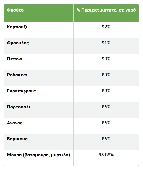 Φρούτα με την υψηλότερη περιεκτικότητα σε νερό