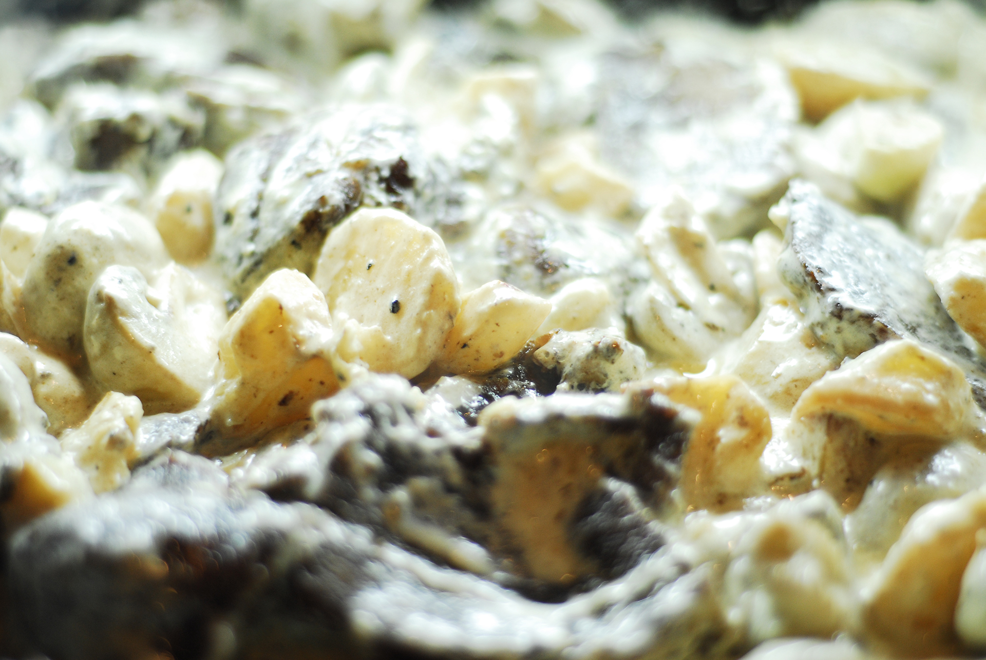 Φιλετάκια alla creme με μανιτάρια και πατάτες στον φούρνο