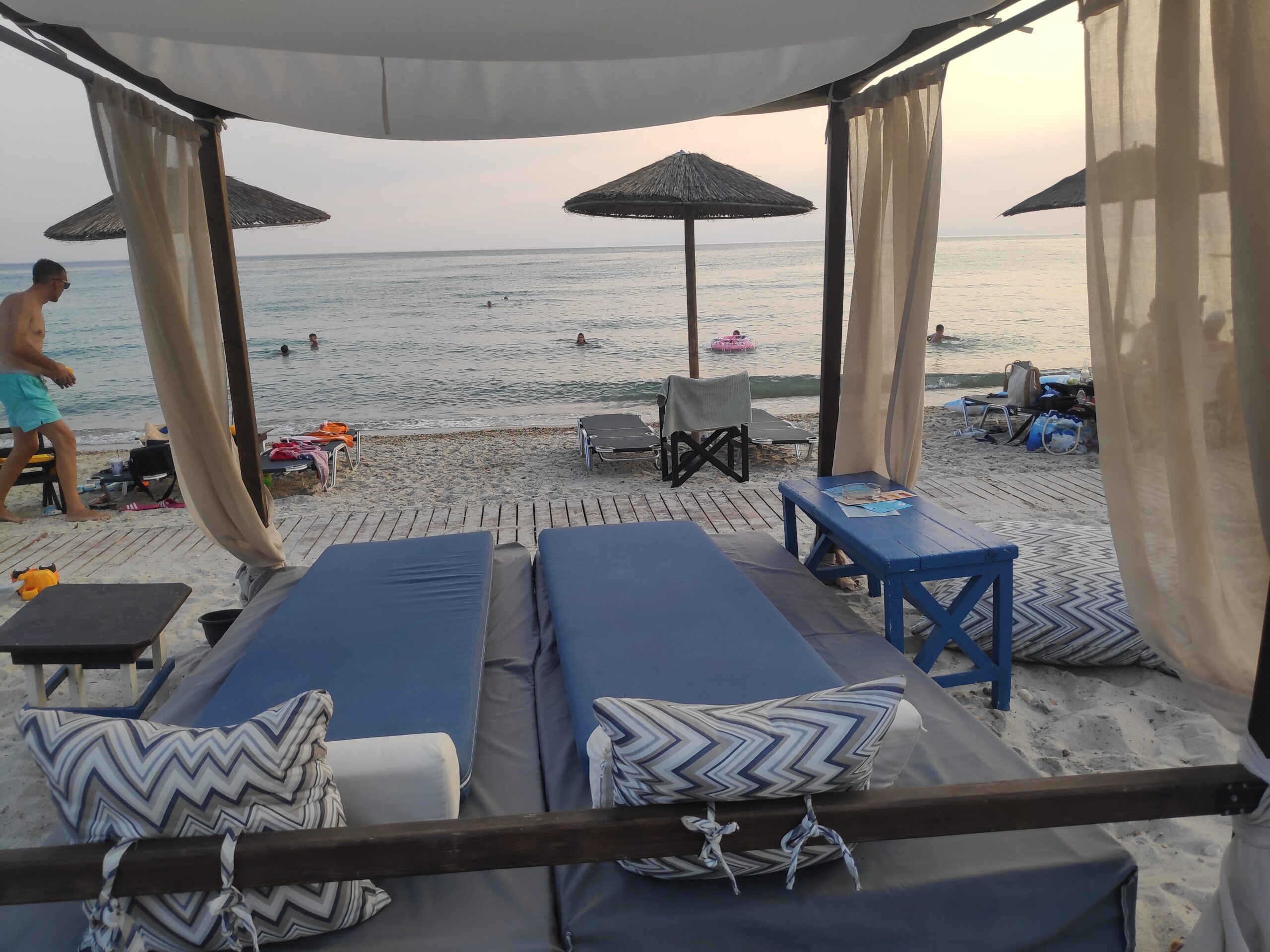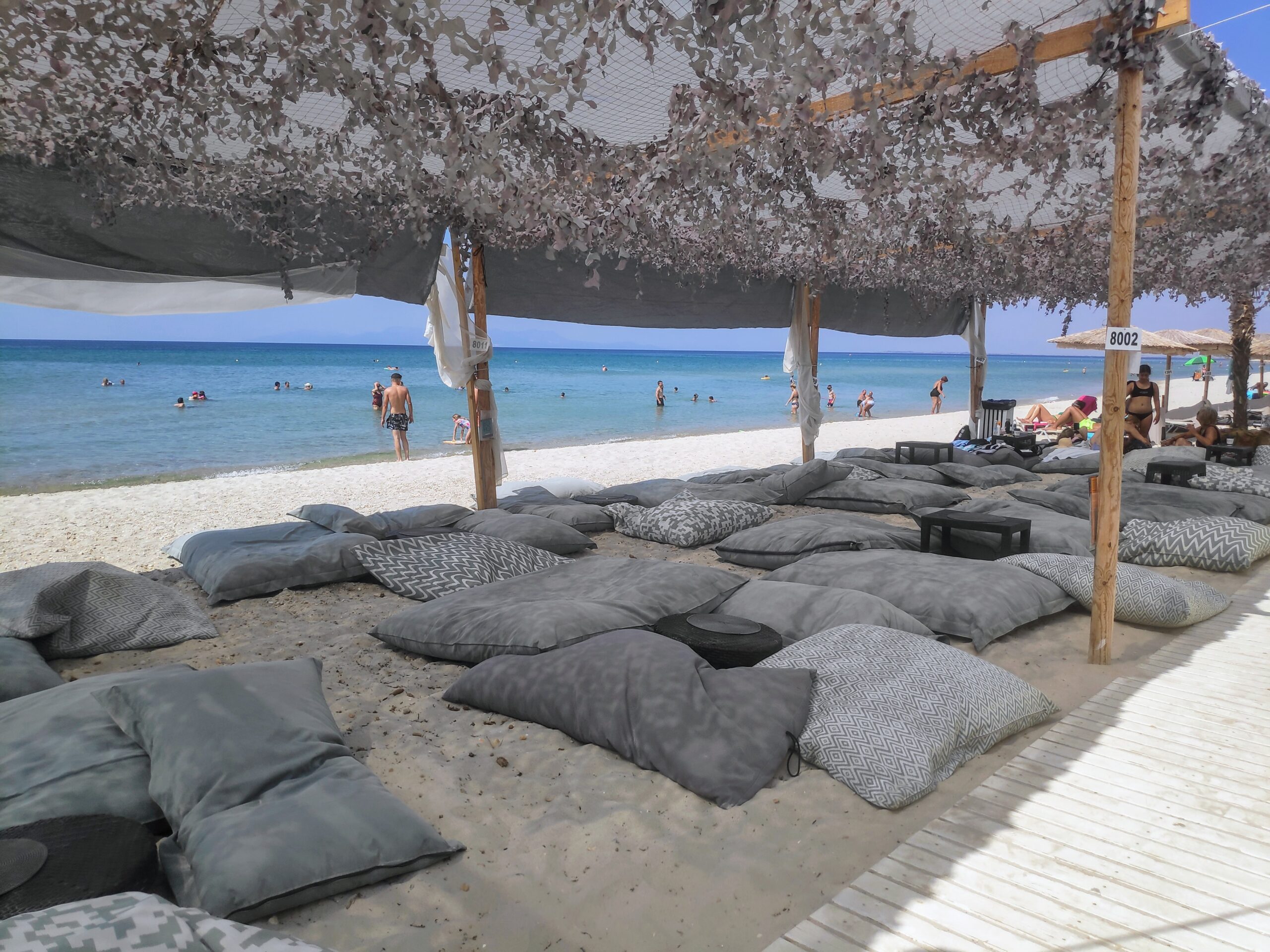 Η παραμονή με όλες τις παροχές, ομπρέλες ξαπλώστρες, μαξιλάρες και σκιερά κιόσκια, μπορεί να γίνει για απεριόριστες ώρες δωρεάν με ελάχιστη κατανάλωση 4 ευρώ. Και όλα τα μπαράκια μια δρασκελιά από την θάλασσα.