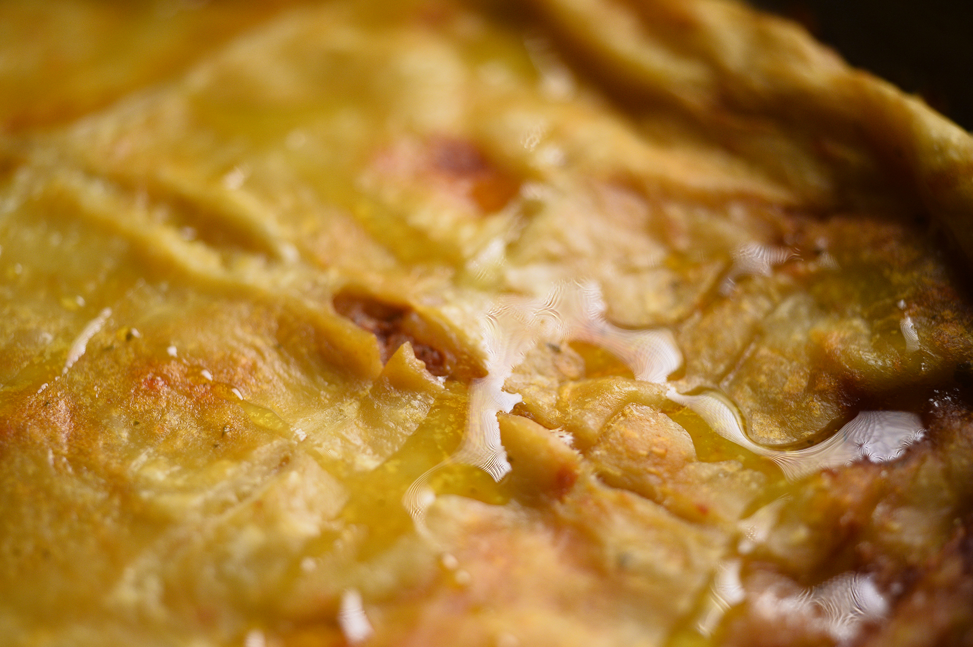Κασερόπιττα με φύλλο κουρού και κόκκινη σάλτσα