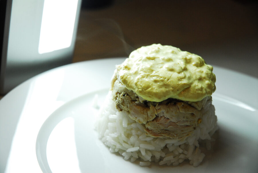 Kοτόπουλο κάρυ στον ατμό με σάλτσα Café de Paris