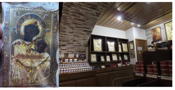 Δυστυχώς, δεν υπήρχε χρόνος να δούμε στο διπλανό Παρεκκλήσι του Αγίου Δημητρίου την θαυματουργό εικόνα της “Παναγίας Εσφαγμένης” (λέγεται ότι ο “θύτης” ήταν κάποιος Κρητικός ιεροδιάκονος) με τα “ακοίμητα” τρία κανδήλια, ούτε την θαυματουργό εικόνα της “Παναγίας της Παραμυθίας” του 14ου αιώνα, που βρίσκεται σ΄ ένα τμήμα της τοιχογραφίας στο διπλανό ομώνυμο παρεκκλήσι. Αντ΄ αυτού, για παρηγοριά, αγόρασα μια εικόνα της από το εντυπωσιακά πλούσιο πωλητήριο της Μονής.