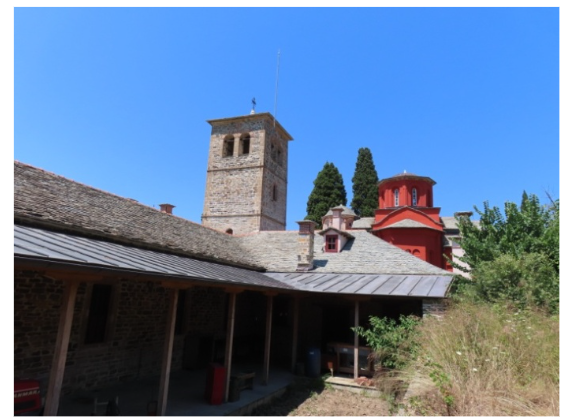 Για αρκετή ώρα ταξιδεύαμε μέσα σ’ ένα πυκνό και δύσβατο δάσος, όταν σ΄ ένα ξέφωτο μιας πλαγιάς πρόβαλλε, όσο γινόταν “κρυμμένο”, το φωτοβολταϊκό πάρκο για τις ενεργειακές ανάγκες του Μοναστηριού. Η θέα της εγκαταλελειμμένης Σκήτης προξενεί μια δυσάρεστη εντύπωση, καθώς μοιάζει με μικρό μοναστήρι χωρίς μοναχούς. Όπως διαπιστώσαμε τα έργα της αναστήλωσης στα οικήματα που βρίσκονται στον περιβάλλοντα χώρο του Ναού προχωρούν με πολύ ικανοποιητικό τρόπο και σύντομα αναμένεται να ολοκληρωθούν.