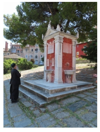 Στο τρίτο μέρος του οδοιπορικού στην Ιερά Μονή Βατοπαιδίου θα εξιστορήσουμε την ξενάγηση μας σε διάφορα μέρη του μοναστηριού. Ο Βατοπαιδινός πατέρας ανέλαβε προσωπικά και για αρκετή ώρα την καλλιτεχνική, ιστορική και πνευματική μας ξενάγηση, στην οποία αντικρίσαμε αρχικά την “κρήνη του Μύλερ”.