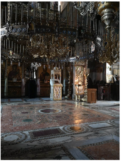 Η Θεία Λειτουργία ως «θεμέλιο και δείκτης του χριστιανικού ήθους». Ένα βίωμα ζωής μπροστά σε μια μυσταγωγική κοινωνία προσώπων, μοναχών και κοσμικών, συναγμένης μπροστά στην λαμπρή Ιερά Πύλη, στο επιχρυσωμένο δρύινο εικονοστάσι, στις θαυματουργές εικόνες, στα μεγάλα ασημένια μανουάλια, στ΄ αναμμένα κανδήλια, στους επιβλητικούς πολυέλαιους, στο κρεμασμένο από τον τρούλο τεράστιο μπρούντζινο στεφάνι με τους δικέφαλους αετούς, στα πολύτιμα αναθήματα μπροστά στην θαυματουργή “Παναγία την Βηματάρισσα”.