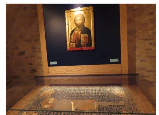Αριστουργηματική είναι και η απεικόνιση των Παθών σε ψηφιδωτό, φυλαγμένο στην Ι. Μ. Βατοπαιδίου, από τα ελάχιστα που υπάρχουν παγκοσμίως, σε αυτό το μικρό μέγεθος.
