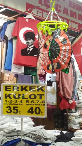 Η αφθονία σε ρούχα, τρόφιμα, παραδοσιακά στέκια φαγητού με τοπικές σούπες, αλλά must επιλογή τα συκωτάκια (τζιεγέρι)με πιλάφι και αριάνι που σερβίρονται στον πεζόδρομο του δημαρχείου, κοντά στην σκεπαστή αγορά, ένα σημείο κατατεθέν όπου βρίσκεις τα πάντα. Οι σημαίες σε όλα τα μικρομάγαζα που πωλούν είδη δώρων, ματόχαντρα, κολώνες, σπορτέξ και sneakers, εσώρουχα από τα πιο καυτά μέχρι τα πιο συντηρητικά, αθλητικές φόρμες, κοράνια, μπιζού, μια ατέλειωτη ποικιλία από πιτζάμες και νυχτικά, αλλά κι έργα τέχνης, γλυκά, ξηρούς καρπούς, αποξηραμένα λαχανικά, φύλλα πίττας, φρούτα.