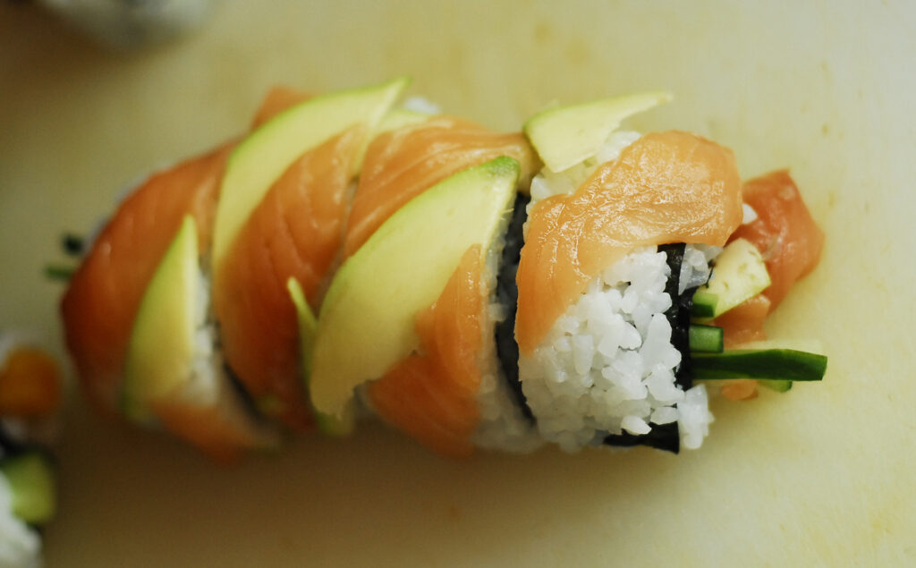 6ο Βήμα – Στόλισμα κυλίδρου sushi με σολομό και αβοκάντο