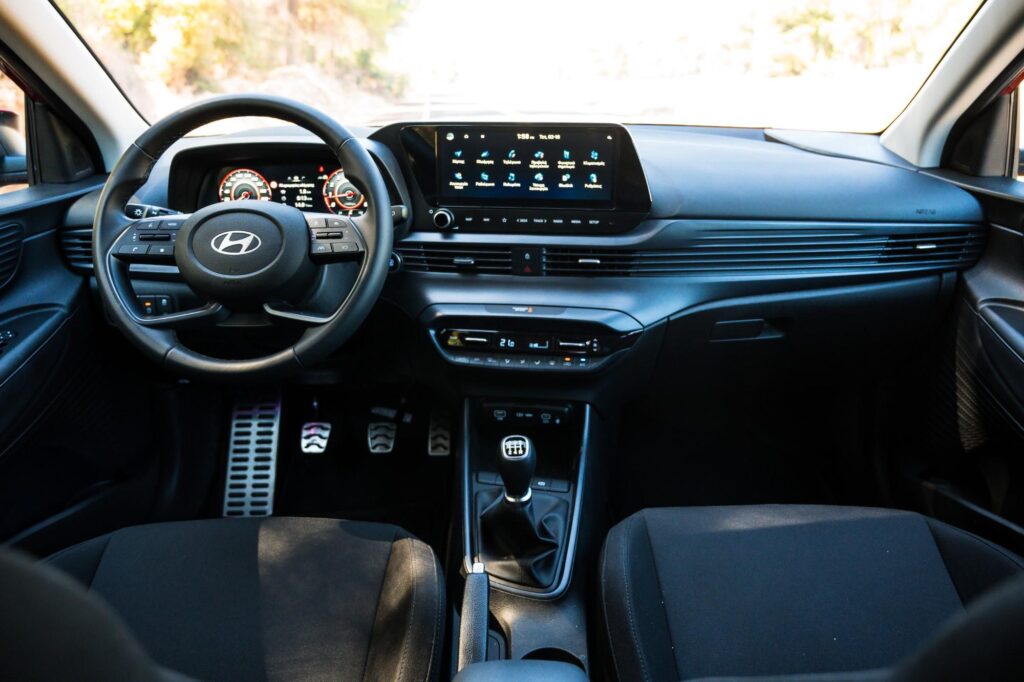 Το εσωτερικό του Hyundai Bayon είναι αρκετά πρακτικό και παρά το γεγονός ότι τα πλαστικά μέρη στο εσωτερικό είναι σκληρά στην υφή, η συναρμογή τους είναι καλή και δεν ακούγονται τριγμοί. Ο προαιρετικός LED φωτισμός, με 64 διαθέσιμες αποχρώσεις, δίνει μια όμορφη νότα κατά την νυχτερινή οδήγηση, ενώ παράλληλα, το αυτοκίνητο διαθέτει πιο προηγμένη τεχνολογία συνδεσιμότητας και αναβαθμισμένο σύστημα infotainment με οθόνη αφής 10,25in (στάνταρ από την βασική έκδοση) και υποστήριξη ενημερώσεων over-the-air.