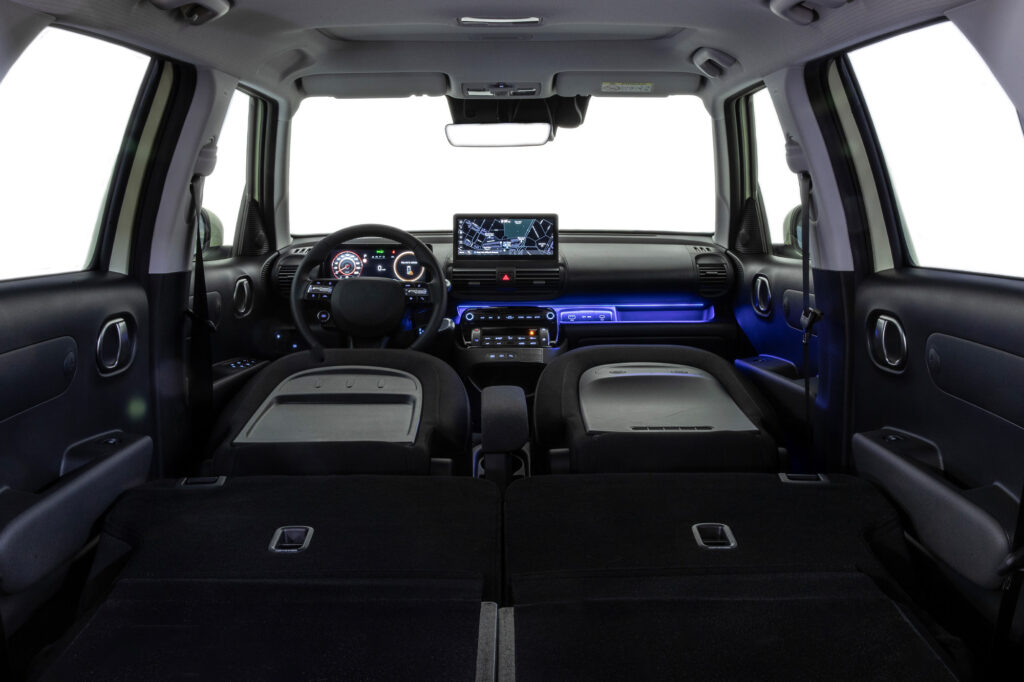 Η καμπίνα του Inster εντυπωσιάζει με την ευρυχωρία της ειδικά στο πίσω μέρος όπου 2 άτομα ύψους έως 1,90m θα κάτσουν αρκετά άνετα, αρκεί να μην είναι αντίστοιχου μεγέθους και οι 2 μπροστινοί επιβάτες. Όλα τα καθίσματα μπορούν να αναδιπλωθούν –