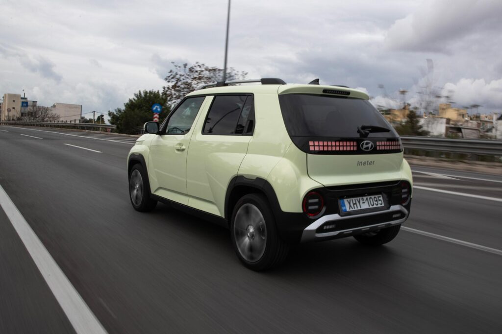που είναι 30km/h λιγότερα από την τελική της έκδοσης με τα 115Ps. Ο θόρυβος κύλισης είναι υπαρκτός, αλλά για αυτοκίνητο του A-segment απόλυτα ικανοποιητικός και γενικά ο τρόπος που περνάει το Inster από τις ανωμαλίες και τις απότομες καμπές είναι πολύ καλός και δεν νοιώθεις ότι οδηγάς αυτοκίνητο που το πεδίο δράσης του είναι αποκλειστικά η πόλη.