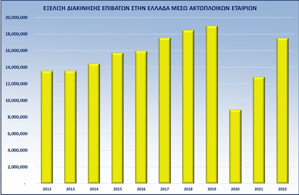 Η ζήτηση του μεταφορικού έργου των επιβατών και των οχημάτων αυξάνεται διαρκώς από το 2013, με εξαίρεση το 2020 που μειώθηκε δραματικά λόγω της πανδημίας. Το μεγαλύτερο ποσοστό της ζήτησης συγκεντρώνεται κατά τους θερινούς μήνες. Σύμφωνα με τις ετήσιες έρευνες για την ακτοπλοΐα που εκδίδει η εταιρία μου XRTC BUSINESS CONSULTANTS, η ακτοπλοϊκή αγορά προσπαθεί πολύ σκληρά να επιβιώσει, παρά το πλήθος των απειλών που δέχεται και των αδυναμιών που τη χαρακτηρίζουν.