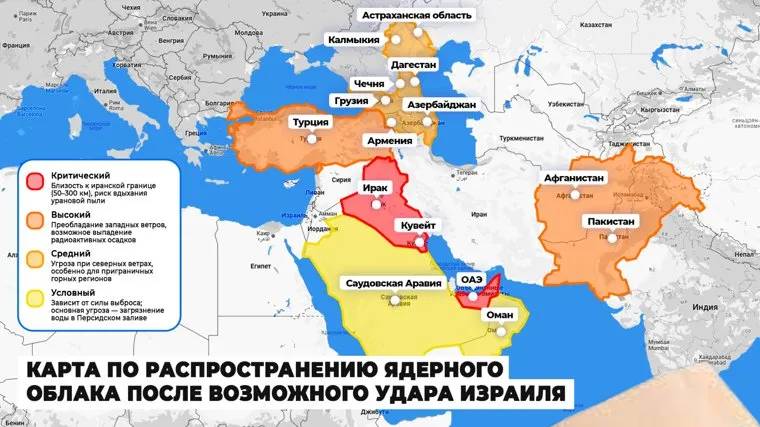 Το πρώην μέλος της επιτροπής αφοπλισμού στον ΟΗΕ, ο Ιγκόρ Νικούλιν, δήλωσε ότι πλήγμα στο Μπουσίρ θα σημαίνει απελευθέρωση ραδιενεργών συστατικών και νέφος παρόμοιο με του Τσερνόμπιλ και ότι αυτό θα απειλούσε πάνω από δέκα-δεκαπέντε χώρες, όχι μόνον τις άμεσα συνορεύουσες, αλλά και την Τουρκία, χώρες της Κασπίας, του Καυκάσου, το Καζακστάν, το Τουρκμενιστάν ίσως και τη Ρωσία. Το που θα κατευθυνόταν το νέφος, εξαρτάται από τις μετεωρολογικές συνθήκες. Οι Ρώσοι ειδικοί δίνουν και χάρτη, θεωρώντας ότι βορειοανατολικά του Ιράν θα προστατευθούν λόγω των οροσειρών. Η Σαουδική Αραβία είναι στο κίτρινο επειδή για αφαλάτωση πόσιμου νερού έχει πρόσβαση και σε άλλες θάλασσες πέραν του Περσικού Κόλπου.