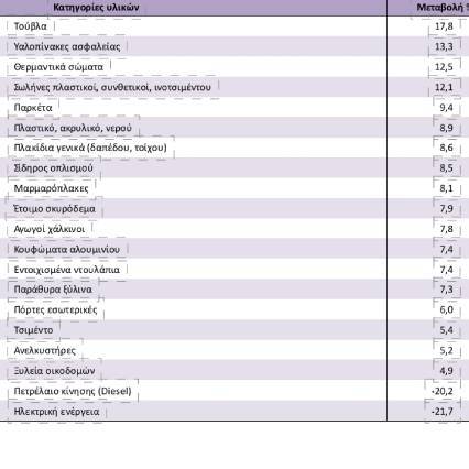 Ο μέσος δείκτης του δωδεκαμήνου Ιουλίου 2022 – Ιουνίου 2023, σε σύγκριση με τον αντίστοιχο δείκτη Ιουλίου 2021 – Ιουνίου 2022, παρουσίασε αύξηση 10,4%, έναντι αύξησης 7,9%. (Σκοπός του δείκτη «είναι η μέτρηση των μηνιαίων μεταβολών των τιμών των οικοδομικών υλικών που αναλώνονται για την κατασκευή νέων κτηρίων κατοικιών»).