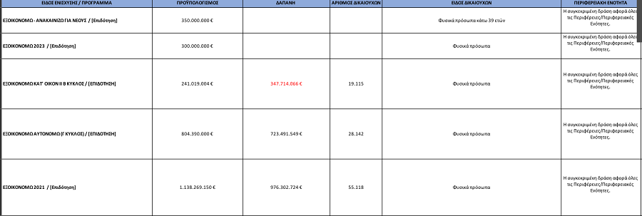 Δεν μπορεί να γίνει σύγκριση μεταξύ τους, αφού αποτελούν διακριτά τμήματα μίας ολοκληρωμένης στρατηγικής με στόχο: την βέλτιστη ενεργειακή αναβάθμιση και εξοικονόμηση ενέργειας. Αυτό που μπορεί να σημειωθεί όμως, είναι ότι κανένα από τα προγράμματα αυτά δεν έμεινε με αδιάθετους πόρους.