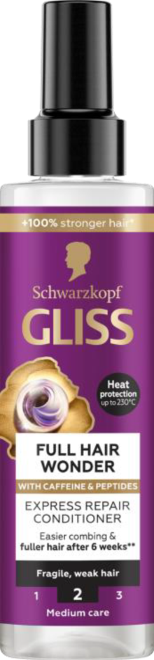 Από την άλλη, για επιπλέον φροντίδα στα μήκη των μαλλιών, χρησιμοποιείστε το Schwarzkopf GLISS Full Hair Wonder Express Repair Conditioner, ένα σπρέι που ψεκάζεται σε ταμποναρισμένα με πετσέτα νωπά μαλλιά.