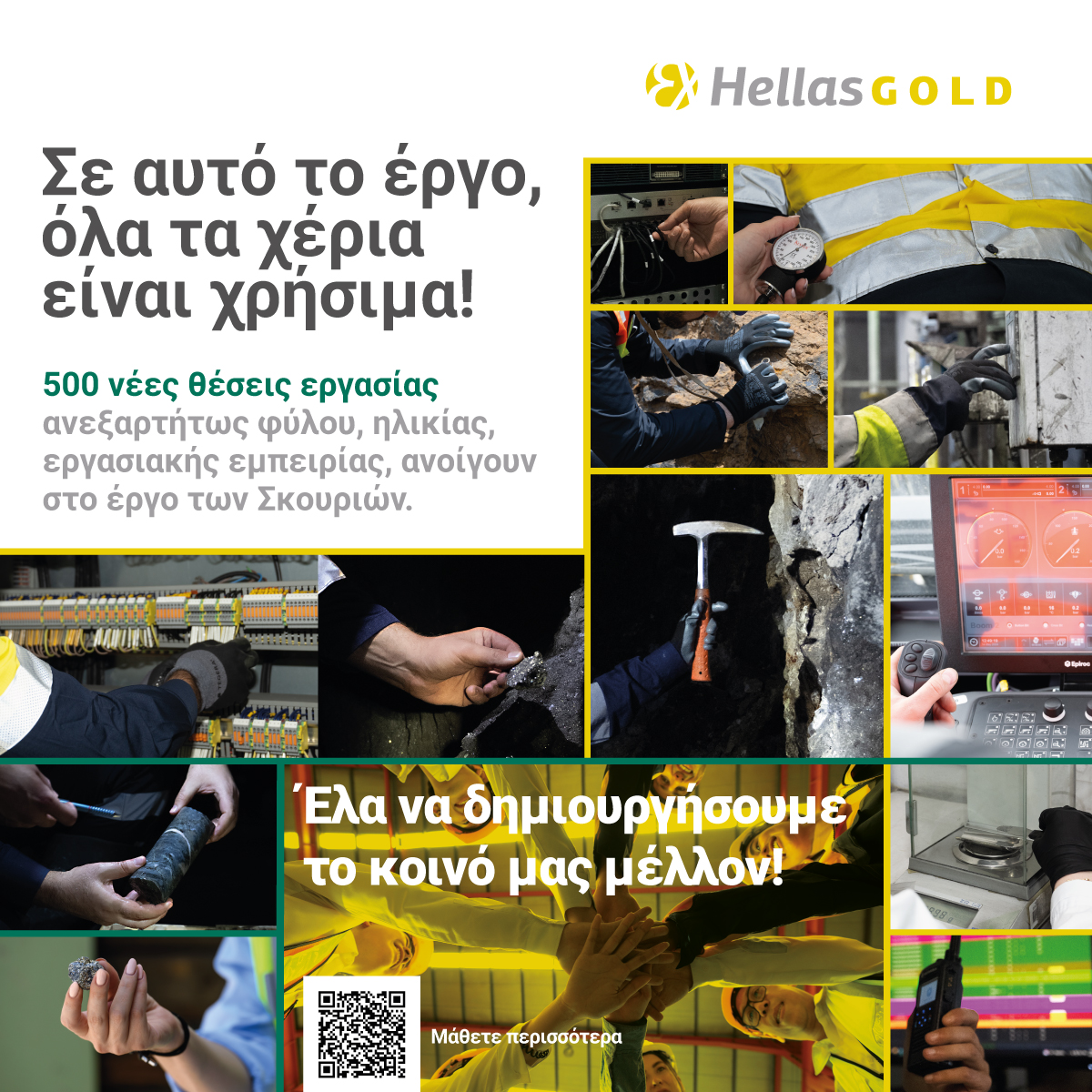 Καθώς οι κατασκευαστικές εργασίες στο μεταλλευτικό έργο χαλκού και χρυσού στις Σκουριές βρίσκονται σε πλήρη εξέλιξη με στόχο το μεταλλείο να τεθεί σε εμπορική λειτουργία στα τέλη του 2025, δημιουργούνται πολυάριθμες νέες ευκαιρίες απασχόλησης σε διάφορους ρόλους, ανοιχτούς σε όλες και όλους, ανεξαρτήτως φύλου, ηλικίας, εργασιακής εμπειρίας ή εκπαιδευτικού υπόβαθρου.