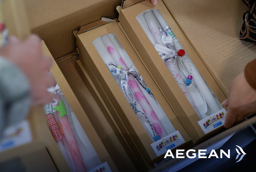 Χειροποίητες λαμπάδες από την «Αμυμώνη», τον Πανελλήνιο Σύλλογο Γονέων, Κηδεμόνων και Φίλων Ατόμων με Προβλήματα Όρασης και Πρόσθετες Αναπηρίες και το «περιοδικό δρόμου Σχεδία» για την υποστήριξη της προσπάθειας των αστέγων και των κοινωνικά αποκλεισμένων, θα προσφέρουν τα πληρώματα της AEGEAN και στους μικρούς αλλά και μεγαλύτερους επιβάτες των πτήσεων της Μεγάλης Παρασκευής και του Μεγάλου Σαββάτου μεταφέροντας το μήνυμα της προσφοράς και της αλληλεγγύης και στηρίζοντας το έργο τους.