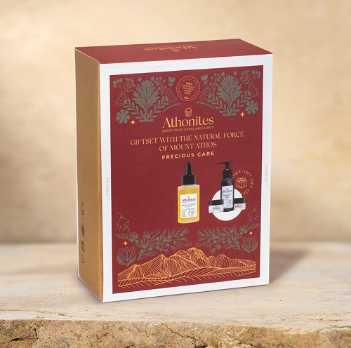 Προερχόμενα από τη γόνιμη και ανέγγιχτη γη και τις πλούσιες βιολογικές καλλιέργειες του Όρους Άθω, τα προϊόντα της μάρκας Athonites έρχονται και την πιο λαμπερή εποχή του χρόνου, να προσφέρουν μια απολαυστική, αναζωογονητική και ουσιαστική εμπειρία περιποίησης, αλλά και να μαγνητίσουν τις καρδιές κάθε παραλήπτη, σε προνομιακές τιμές.
