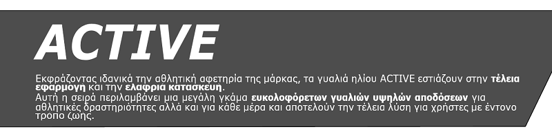 Σχεδιασμένα για χρήστες με έντονη καθημερινότητα στην πόλη, αυτά τα γυαλιά διατίθενται σε μαύρο/μπλε με μπλε καθρεπτέ φακούς, μαύρο ματ με γκρι φακούς, μπεζ/μοβ με μοβ καθρεπτέ φακούς, μαύρο με καφέ ντεγκραντέ φακούς, διάφανο/πράσινο με πράσινους καθρεπτέ φακούς, γκρι/κίτρινο με ασημί καθρεπτέ φακούς.