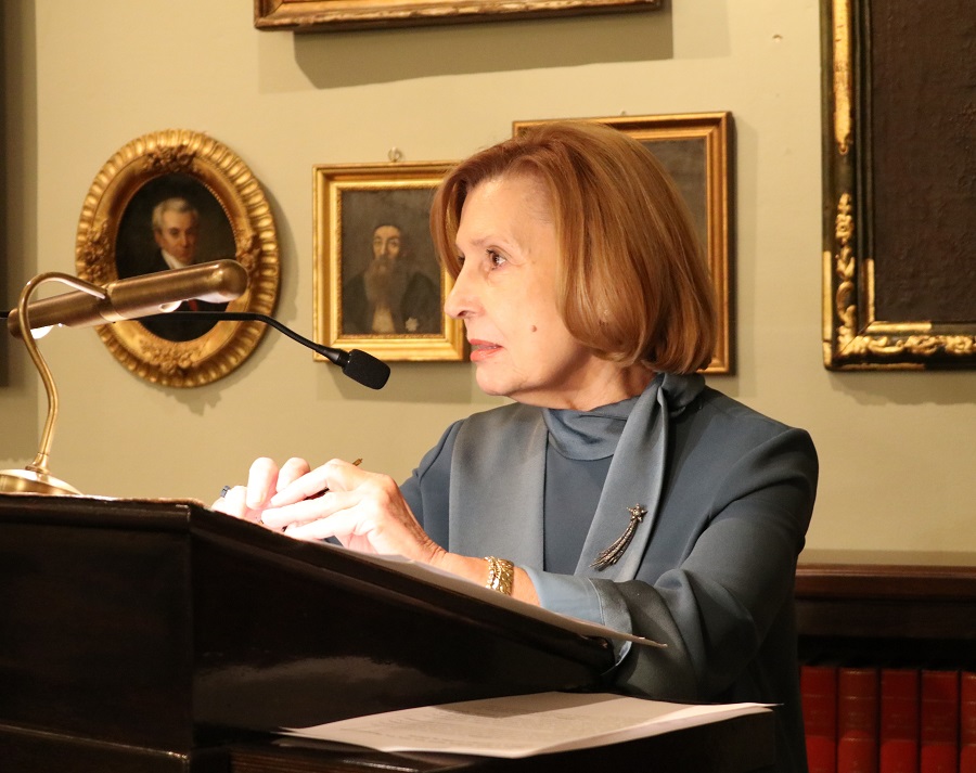 – η κα Ελένη Γούστη-Σταμπόγλη, Ιστορικός, Πρόεδρος του Συλλόγου Φίλων του Μουσείου Καποδίστρια και συντονίστρια του λευκώματος, η οποία μίλησε για τη σημασία της δίγλωσσης έκδοσης, για το αναγνωστικό κοινό της, καθώς και για τις σημαντικές ερευνητικές δυνατότητες της Αναγνωστικής Εταιρίας.