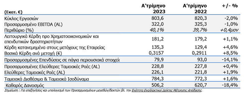 Αύξηση κερδοφορίας: προσαρμοσμένο EBITDA (AL) ενισχυμένο κατά 1,6%, με το προσαρμοσμένο περιθώριο στο 43,3%, υποστηριζόμενο από την αυστηρή διαχείριση κόστους