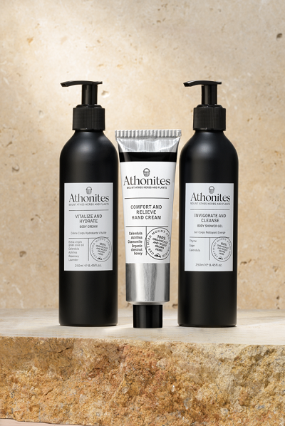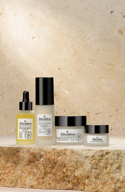 Αυτή η αφοσίωση στις φυτικές συνθέσεις αντικατοπτρίζει τη δέσμευση της μάρκας για ολιστική ευεξία και περιβαλλοντική ευθύνη. Πέραν των φυσικών και βιολογικών εκχυλισμάτων, το brand Athonites προσθέτει αγνά, πιστοποιημένα, ασφαλή και δραστικά κοσμητολογικά συστατικά ηθικής προέλευσης με κλινικά αποδεδειγμένη αποτελεσματικότητα, τα οποία ενισχύουν τη δράση των συνθέσεων.