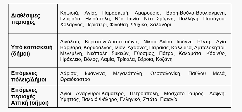 Διαθεσιμότητα σε 13 δήμους της Αθήνας