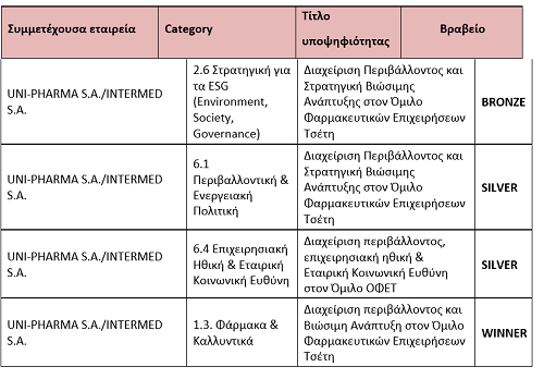 Διακρίσεις σε UNI-PHARMA & InterMed – ESG, Επιχειρησιακή Ηθική, Πολιτική για το περιβάλλον και την ενέργεια